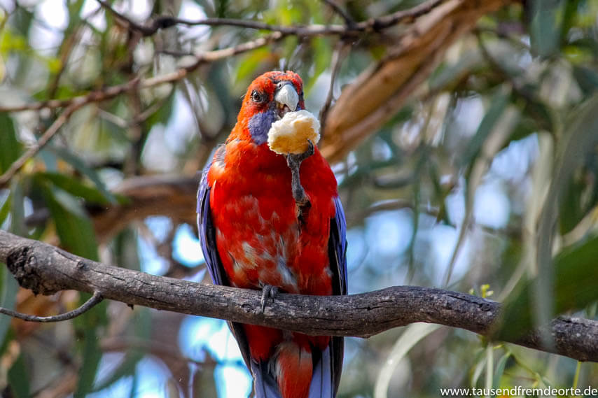 Sobald du die Fähre verlässt beginnt auch schon der sogenannte „Koala Walk“ um die Insel. Der gesamte Weg ist gerade mal 1,2 Kilometer lang, hat aber unglaublich viel Tierwelt zu bieten. Denn Raymond Island ist nicht nur das Zuhause der Koalas und Kängurus, sondern auch von über 140 Vogelarten. Darunter viele Papageiarten und auch Pelikane leben hier. Die Insel wird auch gerne von Zugvögeln angeflogen.