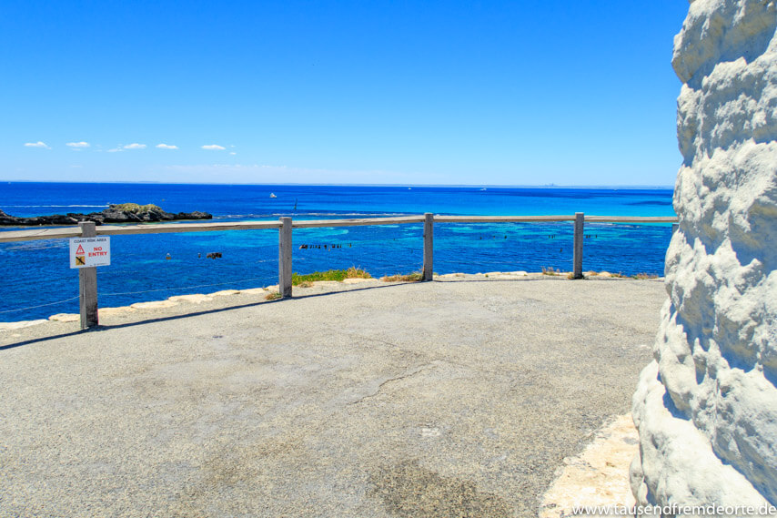 Wenn du aber lieber auf dem Boden bleiben möchtest, so wie wir, dann fahr doch einfach mit dem Fahrrad um die Insel und entdecke dabei das wilde Leben der vielen Tiere. Neben den berühmten Quakkas gibt es auf Rottnest Island noch eine Menge anderer Tiere, besonders unter Wasser. Mit einem Glasbodenboot kannst du dir Schiffwracks, Riffe und Korallen der Insel ansehen. Und natürlich auch den einen oder anderen Fisch entdecken. Natürlich kannst du auch ganz auf die altmodische Weise einfach ins Wasser springen und schnorcheln gehen.