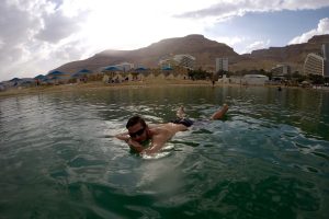 Das Baden im Toten Meer war grandios. Es war genauso, wie ich es mir immer vorgestellt hatte. Der Salzgehalt hier liegt bei etwa 33 % (zum Vergleich, im Mittelmeer sind es etwa 4 %). Durch den hohen Salzgehalt, kannst du dich ohne Probleme an der Oberfläche treiben lassen.