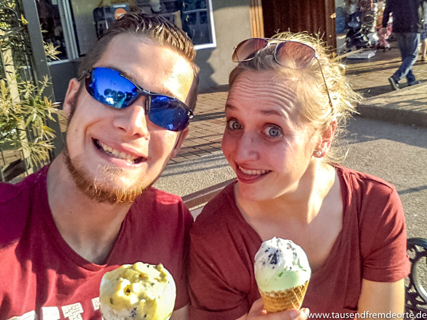 Wir zwei beim Eis essen in Sorrento