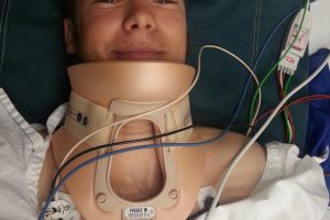 Drei Tage vor meinem letzten Tag als Dönerlieferant, wurde ich von einem Auto unsanft von meinem Roller geholt. Laut Polizei flog ich 15 Meter durch die Luft und landete mit einem offenen Knochenbruch im Oberschenkel und einem Bruch im unteren Bereich der Wirbelsäule im Krankenhaus.