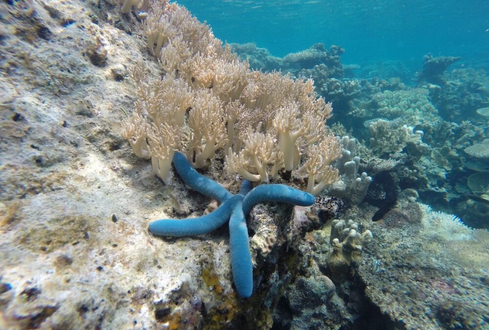 Ein blauer Seestern unter Wasser in Karimunjawa