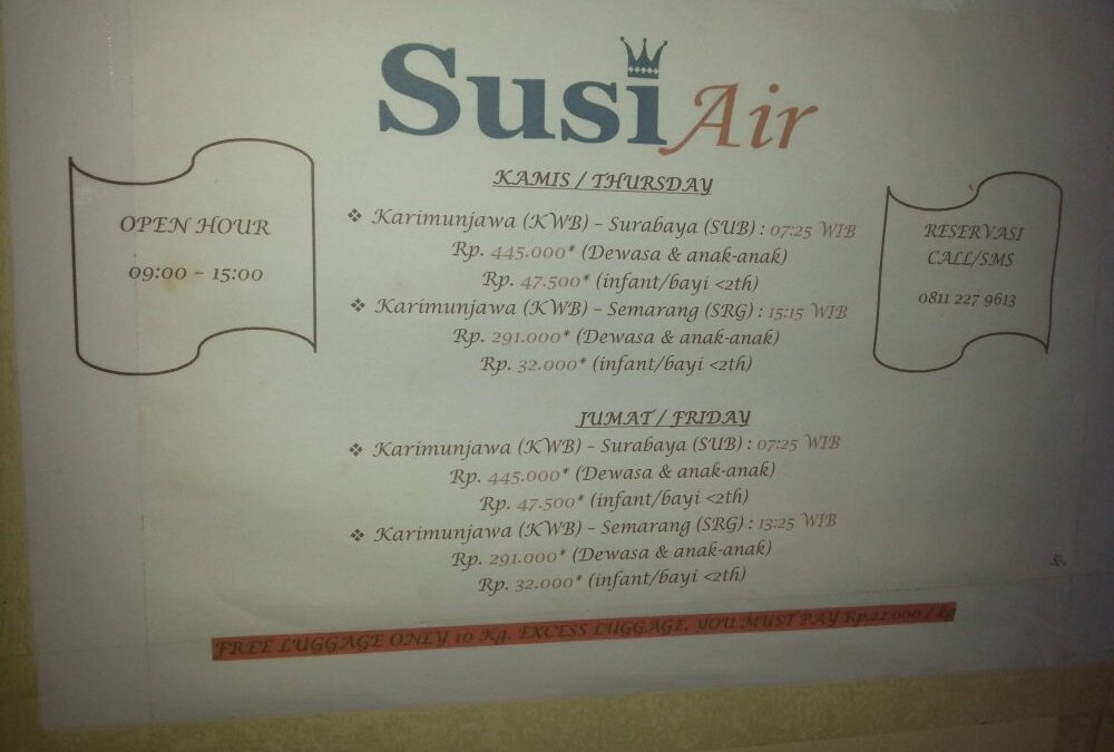 Öffnungszeiten und Preise der Airline "Susi Air" Karimunjawa