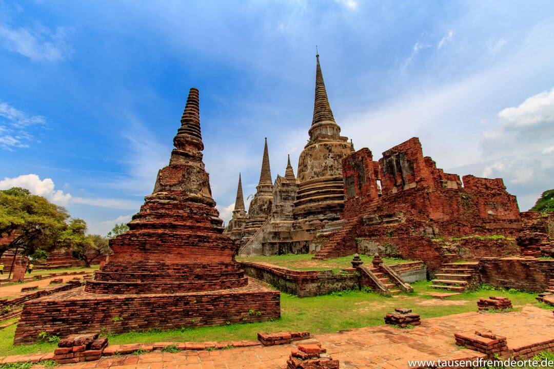 Blick auf die Tempel in Ayutthaya