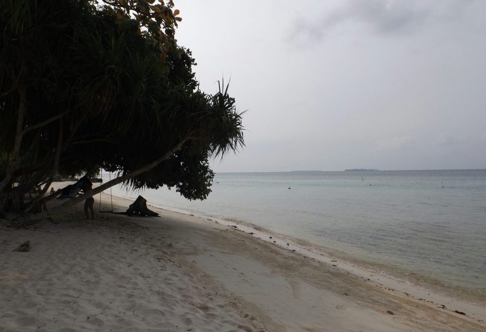 Der Blick auf ein paar Hütten am Strand von Karimunjawa