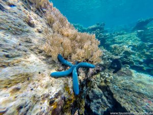 Blauer Seestern unter Wasser bei Karimunjawa