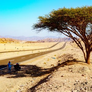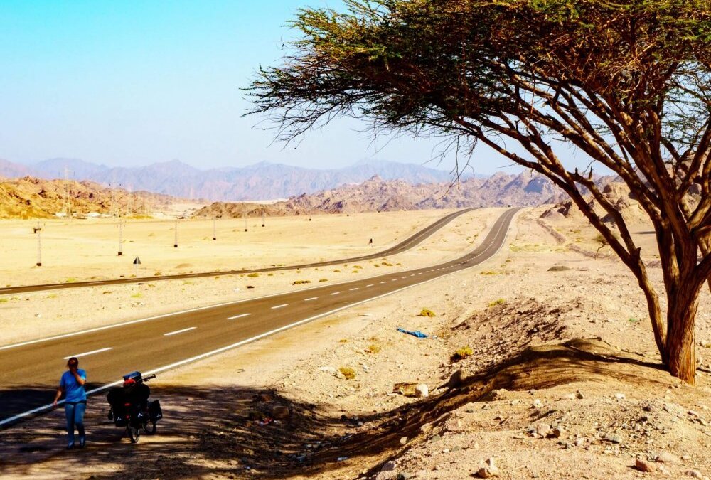 Mit Fahrrad durch die Wüste von Ägypten - man findet kaum ein schattiges Plätzchen